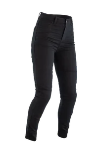 W projektowaniu tych jegginsów włożono wiele pracy, aby zapewnić idealne dopasowanie do kobiecej sylwetki. Mają wąski, zwężany krój. Jegginsy RST x Kevlar® zostały wykonane z elastycznego denimu oraz podszyte warstwą ochronną z włókien w kluczowych strefach, takich jak boki nóg, siedzenie i kolana. Nowy system RST Infinite Adjustment Armour umożliwia precyzyjne dopasowanie ochraniaczy kolan. Kieszeń na ochraniacze kolan z bawełny została wydłużona na całej długości nogawki, co daje większą swobodę regulacji.