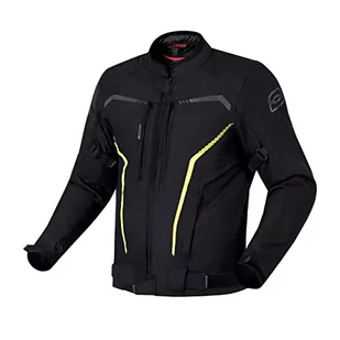 OZONE MOTO Delta IV kurtka motocyklowa włókiennicza dla mężczyzn membrana łokcie i ramiona ochraniacze 3 kanały wentylacyjne elementy odblaskowe 4 kieszenie, Czarny/Fluo Żółty, M