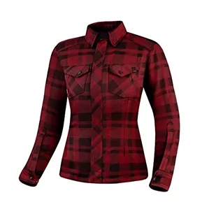 SHIMA Renegade Damska 2 koszula motocyklowa dla kobiet, opancerzona krata flanelowa kurtka z kevlaru od Dupont, plecy CE, ochraniacze na łokcie, zapięcie na zamek błyskawiczny (czerwona, XS)