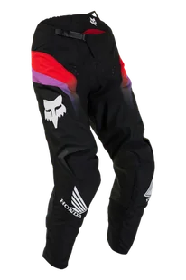 Spodnie 180 HondaNajbardziej rozpoznawane wyposażenie w motocrossie - gama FOX 180 została przetestowana pod względem jakości i wydajności. Charakterystyka produktu: • Rider Attack Position (RAP)™ umożliwia przyjęcie optymalnej, ergonomicznej pozycji na motocyklu• Odporne na wysoką temperaturę i tarcie skórzane panele na kolanach chronią przed zniszczeniem spowodowanym przez ochraniacze kolan i części motocykla • Panele TruMotion® ze strefową rozciągliwością we wszystkich kierunkach zapewniają niezrównaną mobilność• Konstrukcja 600D z trwałymi logotypami wykonanymi techniką sublimacyjną• Tkanina główna z wysokiej jakości grafiką sitodrukową• Dołączone ochraniacze bioder