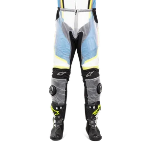 Jeśli kupisz naprawdę ładny skórzany kombinezon, prawdopodobnie nie chcesz go przykryć kolorowym kombinezonem przeciwdeszczowym. Kup w pełni wodoodporne przezroczyste spodnie przeciwdeszczowe od Alpinestars, dzięki czemu będziesz wyglądać tak jak zawsze podczas jazdy!Rozciągliwe panele we wszystkich odpowiednich miejscach zapewniają bardzo dobre i ciasne dopasowanie, dzięki czemu bagażnik przeciwdeszczowy nie migocze przy szybkim wietrze. Elastyczne paski pozwalają kombinezonowi pozostać na miejscu i wpuszczają minimalną ilość wody z otworów. Aby kontynuować jazdę, masz otwory na suwaki na kolana.