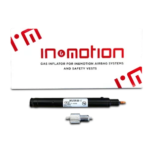 Wkład do napełniania poduszek powietrznych In&motion. Łatwy w wymianie mechanizm inflacyjny, stworzony przez In&motion, przeznaczony do napełniania poduszek powietrznych, montowanych w kurtkach lub kombinezonach wyścigowych RST Airbag.