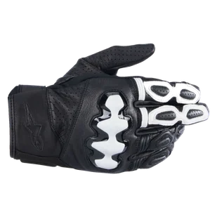 Strategicznie rozmieszczone gumowe elementy dla optymalnej kontroli i wyczucia elementów sterujących 4. Klin na wierzchniej dłoni zapewnia pełną swobodę ruchów i doskonałą adaptację 5. Ergonomiczny stretch z boku dłoni oferuje elastyczność, aby znacznie poprawić mobilność 6. Ściągacz na środku między palcami dla lepszej elastyczności i dopasowania 7. Krótki mankiet z zapięciem na rzep i zakładką ściągacza dla wygody • Sprawdzony w wyścigach Alpinestars, sportowy system ochraniaczy kostek z twardego PU o ultra ergonomicznym kształcie dla najwyższej odporności na uderzenia i ścieranie • Skórzana konstrukcja wnętrza dłoni zawiera wzmocnienia w strefie lądowania, z boku dłoni i palców dla dodatkowej ochrony, doskonałej trwałości i komfortu • Opatentowany przez Alpinestars mostek międzypalcowy zapobiega złamaniu bądź zwichnięciu małego palca podczas upadku • Kategoria CE Il EN 13594: