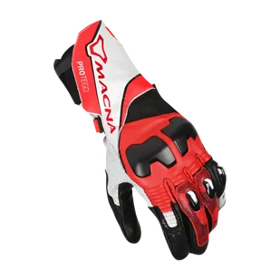 Rękawice Protego zostały opracowane z myślą o użytkownikach motocykli sportowych i uczestnikach wyścigów w gorących warunkach. Te rękawice są maksymalnie uzbrojone w nowe ochraniacze Armax firmy Macna. Bezszwowa konstrukcja w obszarach newralgicznych znacznie zwiększa bezpieczeństwo. Protektory Armax znajdują się na kostkach, dłoni wewnętrznej i palcach, aby przejmować siłę uderzenia i działać jak ślizgacze. Na wewnętrznej stronie dłoni, tuż pod kciukiem, producent zdecydował się na dodatkową warstwę miękkiej i wygodnej wyściółki EVA.
