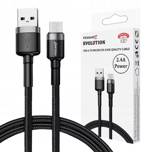 Feegar Evolution USB-A MicroUSB 2. 4A Jeden z najlepiej wykonanych kabli USB na rynku. Zastosowany specjalny nylonowy oplot zapobiega przecieraniu i łamaniu się kabla. Polski projekt Feegar to gwarancja długiego i intensywnego użytkowania. Towar jest w 100% NOWY i NIEUŻYWANY.