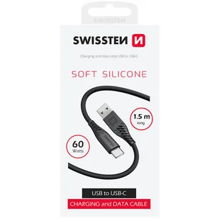 Elastyczny kabel SWISSTEN USB - USB-C o długości 1,5 m z silikonową powłoką, zapewnia szybkie ładowanie do 60 W oraz transfer danych do 480 Mb/s. Kompatybilny z Android Auto, idealny do codziennego użytku.