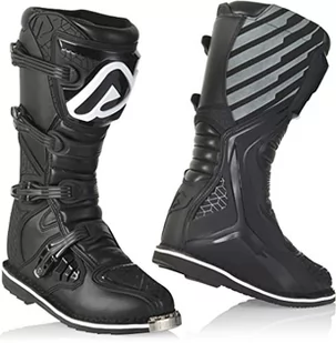 Buty motocrossowe Acerbis E-Team Acerbis kontynuuje rozwój innowacyjnych i ochronnych produktów z takim samym entuzjazmem i pasją, z jaką założyciele firmy Acerbis pracowali we wcześniejszych latach. Cechy: Ochronny, dopasowany but, który jest niezwykle lekki Materiał cholewki odporny na przecięcia i ścieranie Ochrona pięty wykonana z elastomeru dla większego komfortu i amortyzacji wstrząsów Wkładki TPU o zróżnicowanej strukturze w obszarze piszczeli, kostki i zmiany biegów dla maksymalnej ochrony 4-klamrowe zapięcie z klamrami do regulacji mikrometrycznej i zapięciem na rzep na ochraniaczu Zamszowa ochrona termiczna Ochraniacze na getry i golenie wykonane z miękkiej mikrofibry odpornej na przecięcia i ścieranie. Ekskluzywna, odporna na wstrząsy podeszwa Acerbis, odporna na oleje, benzynę i ścieranie Materiał wewnętrzny wykonany z siatki 3D dla doskonałego komfortu i pochłaniania potuSpecyfikacja: EN 13634: 2017