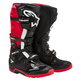 Buty Honda Tech 7 Enduro Drystar® wyposażone są w wodoodporną membranę Drystar®, która zapewnia odporność na warunki atmosferyczne i oddychalność. Specjalnie zaprojektowana podeszwa daje zawodnikom Enduro najwyższą trwałość, przyczepność, czucie i poziom stabilności strukturalnej. Buty Honda Tech 7 Enduro Drystar® z certyfikatem CE promują stabilność i elastyczność poprzez biomechaniczny system obrotowy, który doskonale chroni kostkę. Kształt obuwia został zaprojektowany tak, aby dać kierowcy pełne wyczucie i optymalną interakcję z elementami sterującymi motocykla, łatwy w obsłudze, innowacyjny system klamer umożliwia precyzyjne zapinanie. Honda Tech 7 Enduro Drystar® to idealne buty na cały rok dla miłośników motocyklowej turystyki.