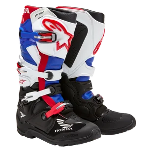Buty Honda Tech 7 Enduro Drystar® wyposażone są w wodoodporną membranę Drystar®, która zapewnia odporność na warunki atmosferyczne i oddychalność. Specjalnie zaprojektowana podeszwa daje zawodnikom Enduro najwyższą trwałość, przyczepność, czucie i poziom stabilności strukturalnej. Buty Honda Tech 7 Enduro Drystar® z certyfikatem CE promują stabilność i elastyczność poprzez biomechaniczny system obrotowy, który doskonale chroni kostkę. Kształt obuwia został zaprojektowany tak, aby dać kierowcy pełne wyczucie i optymalną interakcję z elementami sterującymi motocykla, łatwy w obsłudze, innowacyjny system klamer umożliwia precyzyjne zapinanie. Honda Tech 7 Enduro Drystar® to idealne buty na cały rok dla miłośników motocyklowej turystyki.