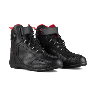Buty wyścigowe iXS!Wykonane z mikrowłókien, perforowane buty z podszewką siatkową dla optymalnego przepływu powietrza. Wyposażone w solidne ochraniacze kostek i pięt. Zapięcie na zamek z boku. Wzmocnienie w miejscu kontaktu z dźwignią zmiany biegów zapobiega zużyciu tej części buta. • Dobrze wentylowane.