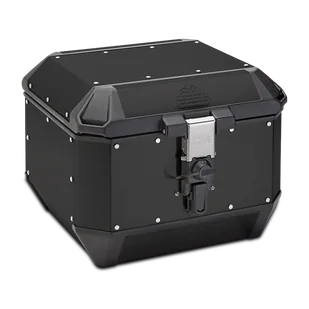 Aluminiowy kufer motocyklowy Trekker Alaska, lakierowany na czarny mat, 44 L. Mieści jeden kask szczękowy. Wyposażony w najpopularniejszy na świecie system mocowania MONOKEY®, który pozwala na użycie jednego klucza do zaczepiania i odczepiania kufra. Kompatybilny ze wszystkimi płytami Monokey, z wyjątkiem tych ze złączem świateł stop. Podobnie jak kufry boczne Trekker ALASKA, jest dostępny w dwóch wykończeniach: