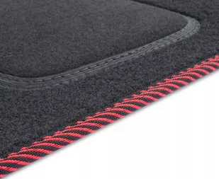 Ilość mocowań: x4 Ilość dywaników: x4 Obszycie: Czarna lamówka skórzana ( błyszcząca ) obszyta czarną nitką Dywaniki są idealnie dopasowane do kształtu podłogi danego samochoduKolor: CzarnyMateriał: