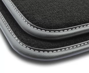 gumowy Obszycie: Czarna lamówka skórzana ( błyszcząca ) obszyta białą nitką Ilość dywaników w zestawie: 4szt Ilość stoperów w zestawie: 4szt