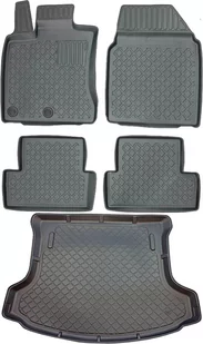 Zestaw dywaników samochodowych wraz z matą do bagażnika wykonaną z tworzywa polskiej firmy ARISTAR. Specyfikacja produktowa: Mata do bagażnika ARISTAR: 192913G Dywaniki gumowe ARISTAR: 602910 Mocowania: