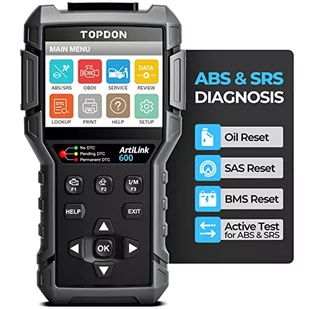 TOPDON AL600 OBD2 Czytnik kodów skanera z aktywnym testem, diagnostyka ABS i SRS, serwis konserwacji samochodu, serwis serwisowy oleju, BMS, SAS, pełna funkcja OBD2, dożywotnia bezpłatna aktualizacja,