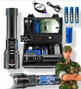 Bardzo MocnaLatarka Taktyczna Led 30000 Wojskowa Zoom Powerbank SHAD0WHAW