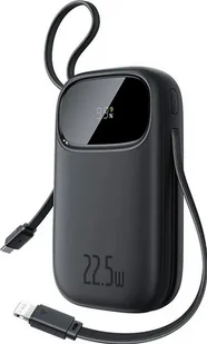 Powerbank Baseus EnerFill FC31 20000mAh 22. 5W z wyświetlaczem cyfrowym i 2 wbudowanymi kablami (USB-C + Lightning) - czarny Powerbank Baseus EnerFill FC31 to niezawodne źródło energii, które możesz zabrać wszędzie – także na pokład samolotu. Dzięki pojemności 20000 mAh i szybkiemu ładowaniu 22,5W zasilisz zarówno iPhone’a, jak i smartfony z Androidem. Wbudowane kable USB-C i Lightning sprawiają, że zawsze masz pod ręką odpowiednie złącze, a jednoczesne ładowanie aż czterech urządzeń pozwoli Ci utrzymać pełną moc niezależnie od sytuacji. Cyfrowy wyświetlacz informuje o pozostałym poziomie naładowania, dając Ci pełną kontrolę.