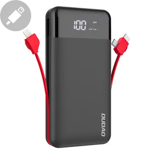Dudao K1Pro - powerbank 20000mAh z wbudowanymi kablami czarny (K1Pro-black) Szukasz powerbanku, którym naładujesz swoje urządzenie kilka razy? Wybierz Dudao K1Pro – to profesjonalny powerbank do codziennego użytku. Nie musisz już pamiętać o zabieraniu ze sobą ładowarki i kabla. Ten uniwersalny powerbank ma dwa wyjściowe porty USB i wbudowane kable z trzema najpopularniejszymi końcówkami, którymi naładujesz wiele modeli urządzeń mobilnych (również Apple), m. in. telefony, smartwatche, słuchawki czy opaski treningowe. Ma pojemność 20000 mAh, która pozwala na naładowanie telefonu niejeden raz.