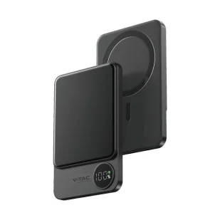 V-Tac Power Bank 5000mAh Szary Magnetyczny 9mm Aluminium, Lightning, LCD, SZYBKI 20W VT-50005-SG