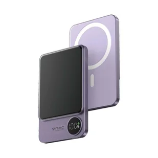 V-Tac Power Bank 5000mAh Szary Magnetyczny 9mm Aluminium, Lightning, LCD, SZYBKI 20W VT-50005-SG