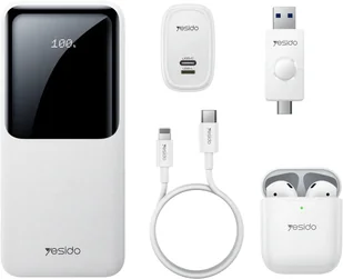 Yesido Powerbank CG10 Eu 10 000 mAh Led (Zestaw Prezentowy 5w1). White Bi