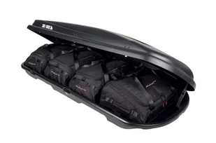 Optymalnie wykorzystują przestrzeń wewnątrz boxu i zwiększają bezpieczeństwo podróży. Torby te są łatwe w załadunku i rozładunku. Torby do boxów dachowych optymalnie wykorzystują wolną przestrzeń w boxie dachowym podczas zimowych lub letnich wakacji. Zestaw toreb na box dachowy składa się ze specjalnie ukształtowanych toreb. Przednia torba ma obniżony profil, dzięki czemu idealnie pasuje do przedniej części boxu dachowego.