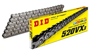 D. I. D to japoński producent wysokowydajnych części przekładni, który jest znany na całym świecie z jakości swoich łańcuchów i zestawów łańcuchowych. Marka ta jest ściśle zaangażowana w motocykle wyczynowe i rozwija swoje łańcuchy we współpracy z licznymi zespołami mistrzostw świata. Nowy łańcuch typu VX3Ogniwa X-Ring o niskim współczynniku tarciaDo motocykli szosowych i terenowychNowy łańcuch VX3 pasuje do szerszej gamy motocykli (maks. 800CC)Dłuższa żywotność dzięki temu, że pierścień uszczelniający trudniej wypada z łańcuchaLepsze przenoszenie mocy dzięki większej sztywności łańcuchaDoskonała wydajność/opór dzięki niższemu tarciu najwyższa wytrzymałość Nr 1 wśród produktów D. I. D Numer OEM: Łańcuch DID "520VX3" 5/8 x 1/4, Pro-Street X-Ring, wzmocniony, siła rozciągająca 3720 kg, łańcuch dostarczany w stanie otwartym ze spinką lub zamkiem nitowym, droga do 800 ccm, kolor: