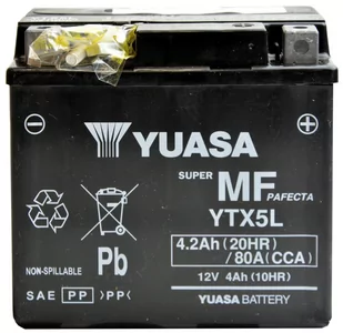 YUASA OZNACZENIE: YTX5L-BS NAPIĘCIE: 12V POJEMNOŚĆ: 4,2Ah PRĄD ROZRUCHU: 80A POLARYZACJA: