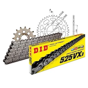 Zestaw łańcuchów DID Alu 525VX3 / 108 nieskończenie czarny do Honda CB 500 ccm rok prod. 1993-2004