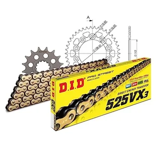Zestaw łańcuchów DID Alu 525VX3 / 124 nieskończenie czarny do Honda CBF N S ABS 600 ccm rok prod. 2008-2013