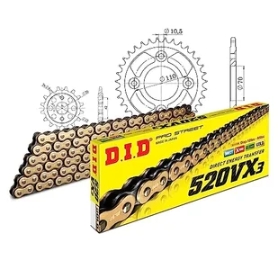 Zestaw łańcuchów DID stal 520VX3 / 102 nit zamek do Honda CM T 400 ccm rok prod. 1982-1983