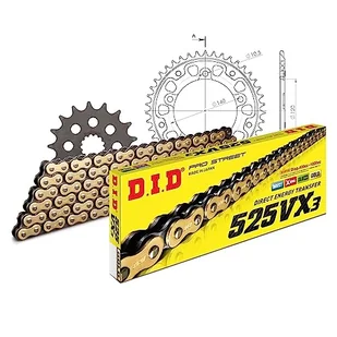 Zestaw łańcuchów DID Stealth 525VX3 / 112 nitowy zamek złoty do Suzuki GSR 750 ccm rok prod. 2011-2015