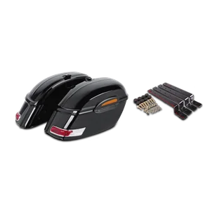 Transportuj wszystko, czego potrzebujesz, dzięki kufrom Touring od CustomAcces! Wykonane z odpornego na uderzenia i zarysowania materiału ABS, pozwalają przewozić większą ilość bagażu (33 litry) i zapewniają jego bezpieczeństwo dzięki wytrzymałości oraz funkcjonalności zastosowanego materiału. Kufry CustomAcces zachowują estetyczną linię Twojego motocykla dzięki wykończeniu w błyszczącej czerni. Otwierane są od góry i wyposażone w zamek, który gwarantuje bezpieczeństwo przewożonych rzeczy. Dodatkowo posiadają tylne światła z opcjonalnym podłączeniem oraz homologacją E-Approval. Uniwersalne uchwyty montażowe KF wchodzą w skład zestawu.
