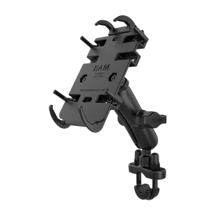Wszechstronne rozwiązanie do montażu telefonu na kierownicy motocykla. Zestaw zawiera ocynkowaną podstawę U-bolt, ramię z dwoma złączami oraz sprężynowy uchwyt na telefon, który pasuje do większości modeli. W zestawie znajduje się osprzęt pasujący do kierownic o średnicy od 0,50„ do 1,25”. Mocowanie zostało zaprojektowane z wykorzystaniem opatentowanego systemu kulowo-gniazdowego RAM® o średnicy 1", który posiada punkty regulacji na obu końcach podwójnego ramienia gniazdowego, umożliwiając niemal nieskończoną regulację i idealne kąty widzenia. Charakterystyka produktu: