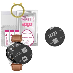 1 x szkło hybrydowe apgo Hybrid Flexible Nano Glass Matte; 1 x sucha ściereczka wielokrotnego użytku; 1 x mokra ściereczka (apgo lub inna w zależności od dostępności); 1 x rakla ułatwiająca montaż; 1 x zestaw naklejek służący do usuwania kurzu tuż przed nałożeniem produktu; 1 x podkładka samoprzylepna ułatwiająca montaż; Po co te kółeczka z uszami ? : ) To podkładki samoprzylepne. Podkładki samoprzylepne rozwiązują problem przesuwającego się urządzenia po blacie podczas montażu. Zegarek/smartwatch/opaska ze względu na swoje małe rozmiary potrafi mocno przesuwać się po blacie podczas montażu. Podkładki samoprzylepne rozwiązują ten problem.