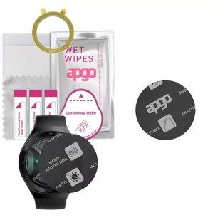 1 x szkło hybrydowe apgo Hybrid Flexible Nano Glass Matte; 1 x sucha ściereczka wielokrotnego użytku; 1 x mokra ściereczka (apgo lub inna w zależności od dostępności); 1 x rakla ułatwiająca montaż; 1 x zestaw naklejek służący do usuwania kurzu tuż przed nałożeniem produktu; 1 x podkładka samoprzylepna ułatwiająca montaż; Po co te kółeczka z uszami ? : ) To podkładki samoprzylepne. Podkładki samoprzylepne rozwiązują problem przesuwającego się urządzenia po blacie podczas montażu. Zegarek/smartwatch/opaska ze względu na swoje małe rozmiary potrafi mocno przesuwać się po blacie podczas montażu. Podkładki samoprzylepne rozwiązują ten problem.