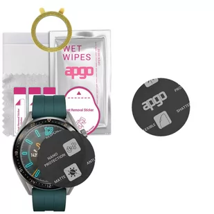 1 x szkło hybrydowe apgo Hybrid Flexible Nano Glass Matte; 1 x sucha ściereczka wielokrotnego użytku; 1 x mokra ściereczka (apgo lub inna w zależności od dostępności); 1 x rakla ułatwiająca montaż; 1 x zestaw naklejek służący do usuwania kurzu tuż przed nałożeniem produktu; 1 x podkładka samoprzylepna ułatwiająca montaż; Po co te kółeczka z uszami ? : ) To podkładki samoprzylepne. Podkładki samoprzylepne rozwiązują problem przesuwającego się urządzenia po blacie podczas montażu. Zegarek/smartwatch/opaska ze względu na swoje małe rozmiary potrafi mocno przesuwać się po blacie podczas montażu. Podkładki samoprzylepne rozwiązują ten problem.