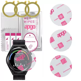 3 sztuki apgo Hybrid Flexible Nano Glass Ultra Clear, szkła hybrydowego do Huawei Watch GT Runner Wersja Ultra Clear - super przejrzyste, nie zmienia barw wyświetlanego obrazu, błyszczące, transparentne. Chroń urządzenie przed pęknięciem i zarysowaniami! Cechy: niepękające, odporniejsze niż hartowane; połączenie zalet folii hydrożelowej i wytrzymałości szkła hartowanego; jedna z warstw to silikonowy podkład anty-uderzeniowy, zapewniający ekstremalnie skuteczną amortyzację efektów uderzeń; wzmocnienie ekranu do 350%; Full Glue - klej na całej powierzchni; twardość 8H (ASTM D3363); warstwa oleofobowa z ceramiczną powłoką; ultra cienkie (0,3 mm); Szkło hybrydowe zakrywa płaską część wyświetlacza - w zamian jednak posiada wyższą odporność na uderzenia i zarysowania. W zestawie: 3 x szkło hybrydowe apgo Hybrid Flexible Nano Glass Ultra Clear; 1 x sucha ściereczka wielokrotnego użytku; 3 x mokra ściereczka (apgo lub inna w zależności od dostępności); 1 x rakla ułatwiająca montaż; 1 x zestaw naklejek służący do usuwania kurzu tuż przed nałożeniem produktu; 3 x podkładka samoprzylepna ułatwiająca montaż; Po co te kółeczka z uszami ? :