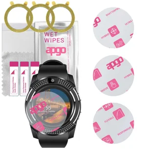 3 sztuki apgo Hybrid Flexible Nano Glass Ultra Clear, szkła hybrydowego do Smartwatch V8 Wersja Ultra Clear - super przejrzyste, nie zmienia barw wyświetlanego obrazu, błyszczące, transparentne. Chroń urządzenie przed pęknięciem i zarysowaniami! Cechy: niepękające, odporniejsze niż hartowane; połączenie zalet folii hydrożelowej i wytrzymałości szkła hartowanego; jedna z warstw to silikonowy podkład anty-uderzeniowy, zapewniający ekstremalnie skuteczną amortyzację efektów uderzeń; wzmocnienie ekranu do 350%; Full Glue - klej na całej powierzchni; twardość 8H (ASTM D3363); warstwa oleofobowa z ceramiczną powłoką; ultra cienkie (0,3 mm); Szkło hybrydowe zakrywa płaską część wyświetlacza - w zamian jednak posiada wyższą odporność na uderzenia i zarysowania. W zestawie: 3 x szkło hybrydowe apgo Hybrid Flexible Nano Glass Ultra Clear; 1 x sucha ściereczka wielokrotnego użytku; 3 x mokra ściereczka (apgo lub inna w zależności od dostępności); 1 x rakla ułatwiająca montaż; 1 x zestaw naklejek służący do usuwania kurzu tuż przed nałożeniem produktu; 3 x podkładka samoprzylepna ułatwiająca montaż; Po co te kółeczka z uszami ? :