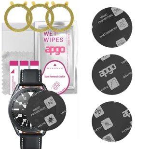 3 sztuki apgo Hybrid Flexible Nano Glass Matte, szkła hybrydowego do Samsung Galaxy Watch 3 45MM Produkt jest w wersji MATTE = matowej, która zapobiega odbiciom światła na ekranie i eliminuje ślady odcisków palców. W efekcie ekran pozostaje bez refleksów i nie wymaga częstego czyszczenia. Chroń urządzenie przed pęknięciem i zarysowaniami! Cechy: niepękające, odporniejsze niż hartowane; szkło hybrydowe matowe z efektem ziarnistości i minimalnym efektem HAZE; połączenie zalet folii hydrożelowej i wytrzymałości szkła hartowanego; jedna z warstw to silikonowy podkład anty-uderzeniowy, zapewniający ekstremalnie skuteczną amortyzację efektów uderzeń; wzmocnienie ekranu do 350%; Full Glue - klej na całej powierzchni; twardość 8H (ASTM D3363); warstwa oleofobowa z ceramiczną powłoką; ultra cienkie (0,3 mm); Szkło hybrydowe zakrywa płaską część wyświetlacza - w zamian jednak posiada wyższą odporność na uderzenia i zarysowania. W zestawie: