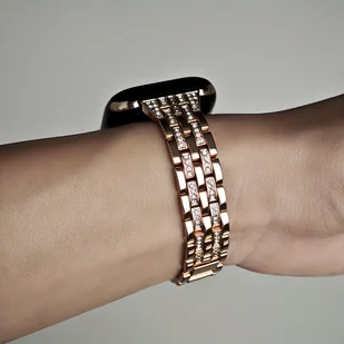 TEMU Stalowa Bransoletka do Apple Watch, Elegancki Damski Design z Błyszczącym Wkładem, Idealna na Pracę/Biuro/Fitness/Imprezy, Różowe Złoto/Srebro,