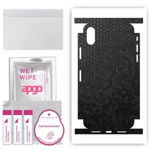 Skórki posiadają kształt oraz niezbędne wycięcia/otwory dopasowane do wybranego przez Ciebie urządzenia. Skórka strukturalna dedykowana na TYŁ+BOKI do Apple iPhone X. Wykonana z folii strukturalnej winylowej imitującej Plaster Miodu Czarny. Skin nada nowego wyglądu; Poprawia przyczepność, chwyt w dłoni; Chroni przed porysowaniem i odciskami palców; Wprowadza dodatkową ochronę przed stłuczeniami; W zestawie: 1 x skórka na TYŁ+BOKI; 1 x sucha ściereczka wielokrotnego użytku; 1 x mokra ściereczka (apgo lub inna w zależności od dostępności); 1 x rakla ułatwiająca montaż; 1 x zestaw naklejek służący do usuwania kurzu tuż przed nałożeniem produktu; Zobacz koniecznie jak montować.