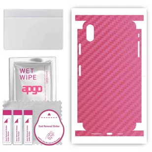 Skórki posiadają kształt oraz niezbędne wycięcia/otwory dopasowane do wybranego przez Ciebie urządzenia. Skórka strukturalna dedykowana na TYŁ+BOKI do Apple iPhone XS Max. Wykonana z folii strukturalnej winylowej imitującej Carbon Różowy. Skin nada nowego wyglądu; Poprawia przyczepność, chwyt w dłoni; Chroni przed porysowaniem i odciskami palców; Wprowadza dodatkową ochronę przed stłuczeniami; W zestawie: 1 x skórka na TYŁ+BOKI; 1 x sucha ściereczka wielokrotnego użytku; 1 x mokra ściereczka (apgo lub inna w zależności od dostępności); 1 x rakla ułatwiająca montaż; 1 x zestaw naklejek służący do usuwania kurzu tuż przed nałożeniem produktu; Zobacz koniecznie jak montować.