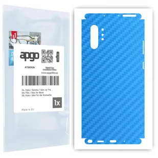 Skórki posiadają kształt oraz niezbędne wycięcia/otwory dopasowane do wybranego przez Ciebie urządzenia. Skórka strukturalna dedykowana na TYŁ+BOKI do Samsung Galaxy Note 10+. Wykonana z folii strukturalnej winylowej imitującej Carbon Niebieski. Skin nada nowego wyglądu; Poprawia przyczepność, chwyt w dłoni; Chroni przed porysowaniem i odciskami palców; Wprowadza dodatkową ochronę przed stłuczeniami; W zestawie: 1 x skórka na TYŁ+BOKI; 1 x sucha ściereczka wielokrotnego użytku; 1 x mokra ściereczka (apgo lub inna w zależności od dostępności); 1 x rakla ułatwiająca montaż; 1 x zestaw naklejek służący do usuwania kurzu tuż przed nałożeniem produktu; Zobacz koniecznie jak montować.