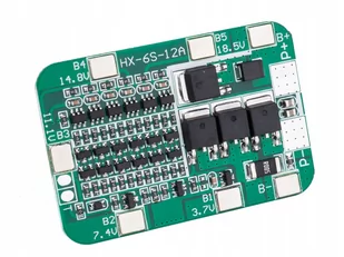 Ładowarka BMS PCM 6S 15A 24V Li-ion 18650 z zabezpieczeniem Dane techniczne: Ładowarka LI-ION 15 A 6S 22,2 V 24V 25,2V BMS 18650 Napięcie ładowania 25,5V 6 ogniw lub 6 pakietów ogniw 18650 litowo-jonowych lub 26650 litowo-polimerowych Zabezpieczenie przed nadmiernym rozładowaniem ogniwa poniżej: 2,55 V ± 0. 05 V Zabezpieczenie przed przeładowaniem - napięcie maksymalne na ogniwo 4,25 V -4,35 V ± 0,05 V Zabezpieczenie przed przeciążeniem prądowym 25A Zabezpieczenie przed zwarciem Maksymalny prąd pracy: 15 A Maksymalny prąd rozruchowy pracy (chwilowy):