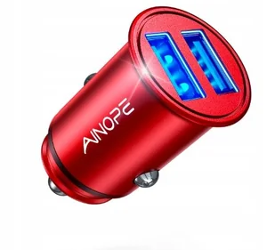 Ładowarka samochodowa AINOPE 4,8A kompaktowa metalowa podwójna USB czerwona