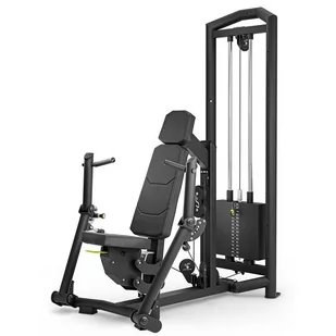 Maszyna posiada aż pięć stopni regulacji wysokości siedziska, dzięki czemu każdy użytkownik dopasuje ją do swojego wzrostu. Regulacja siedziska jest oparta na siłownikach, dzięki czemu nie musisz schodzić z maszyny aby dokonać regulacji.