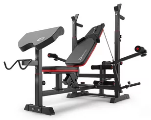 Ławka treningowa HS-1075 marki Hop-Sport przeznaczona do treningu ze sztangą lub hantlami. Szeroki wachlarz możliwości ławki uzupełniają modlitewnik, rozpiętki na ręce oraz prasa do nóg. Ławka pozwala na ćwiczenia mięśni klatki piersiowej, ramion, tricepsów, przedramion, obręczy barkowej oraz nóg. Solidne wykonanie i grube, stalowe profile (5 cm) zapewnią bezpieczeństwo podczas ćwiczeń i trwałość konstrukcji na lata, a malowanie proszkowe sprawia, że ławka wygląda estetycznie. Sprzęt wyposażony jest w regulację wysokości stojaków, modlitewnika, oparcia i prasy.