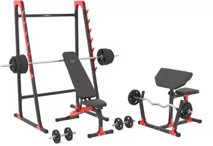 Zestaw MS6_2.0_113KG | Ławka dwustronna + stojaki bramowe + Ławka Scotta (modlitewnik) z regulacją podparcia + zestaw gryfów i obciążeń 113 kg - Marbo Sport