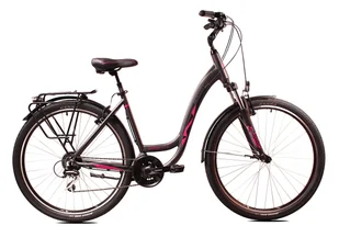 Lekka rama aluminiowa o komfortowej geometrii, przeznaczona dla kobiet. Niezawodny napęd Shimano Acera 3x7. Amortyzator SR Suntour: XCE 28 AP 29 100mm. Wspor...